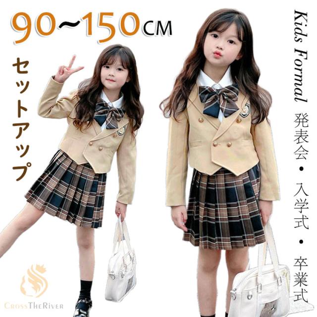 卒業式 小学校女子 スカートスーツ スーツ 女の子 150 160 小学校 入学式 なんちゃって制服 セット 卒園式 子供服 ブレザー リボン チェック プリーツスカ ブラウス