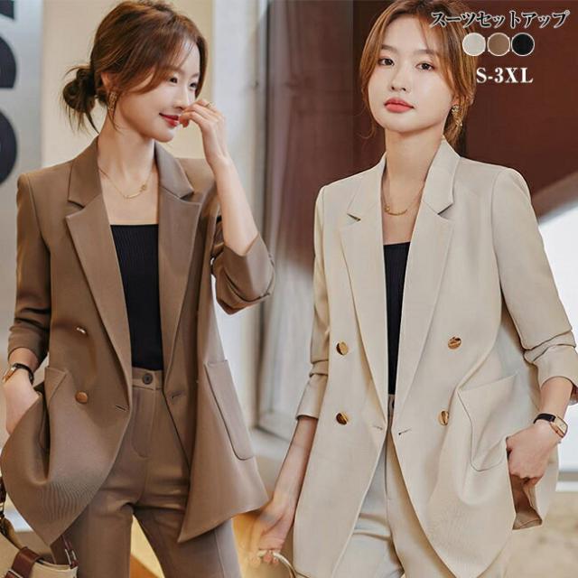 レディーススーツ セットアップ パンツ スーツ セットアップ パンツスーツ 人気 S M L XL 2XL 3XL ブラック コーヒー ベージュ