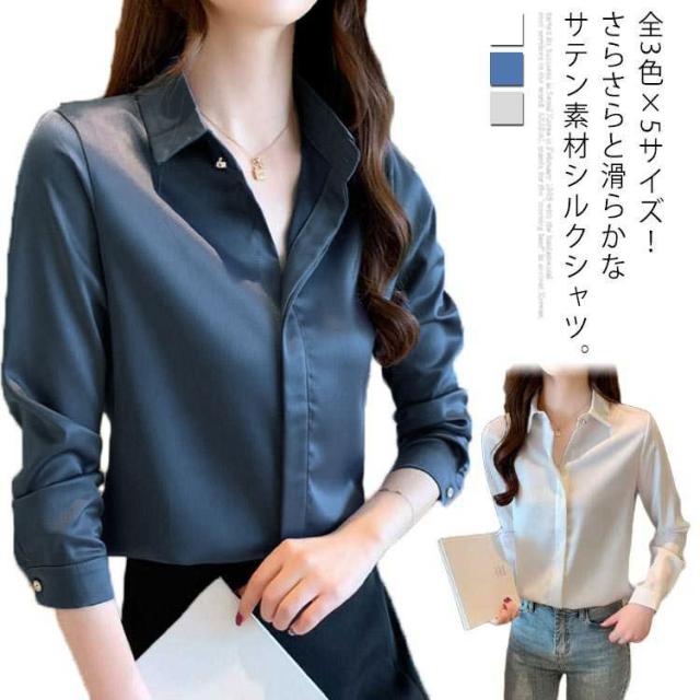 全3色×5サイズ シルクシャツ シャツ レディース シルク サテン素材 長袖シャツ ワイシャツ 長袖 無地シャツ ベーシック 通勤 春 夏 秋 オフィス