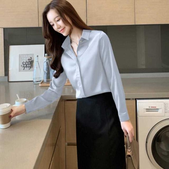 全3色×5サイズ シルクシャツ シャツ レディースファッション 超目玉商品 グレー ホワイト ブルー S M L XL XXL