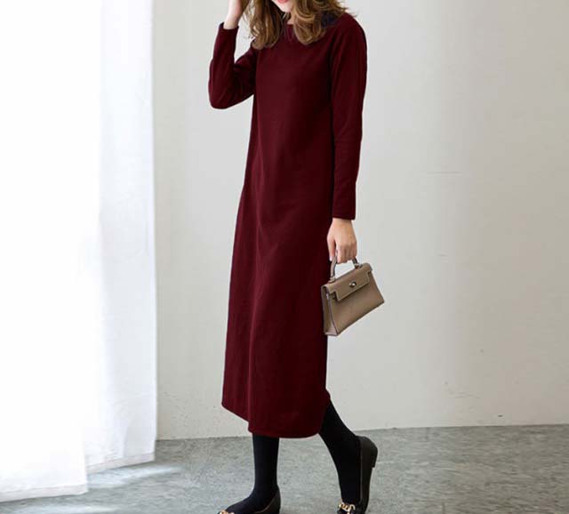 ワンピース 長袖 ロング きれいめ 大人 ロング丈 リラックス スウェットワンピース 無地 スエット レディース ファッション カジュアル ワンマイルウェア ひざ下 膝下 大きめ 可愛い