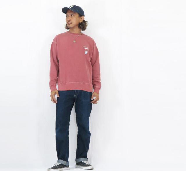 ピグメント染めにバイウォッシュを加えヴィンテージ色を強く出したスウェット。
