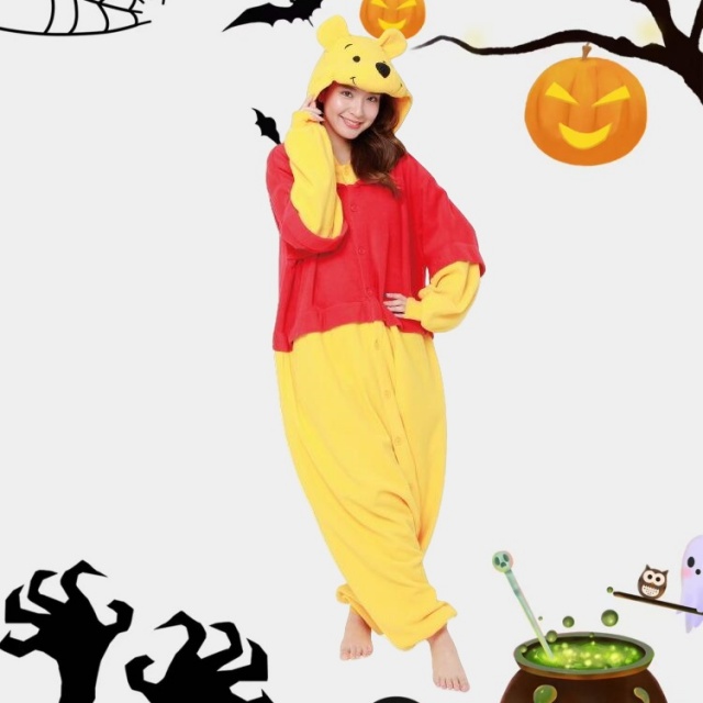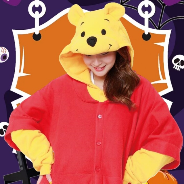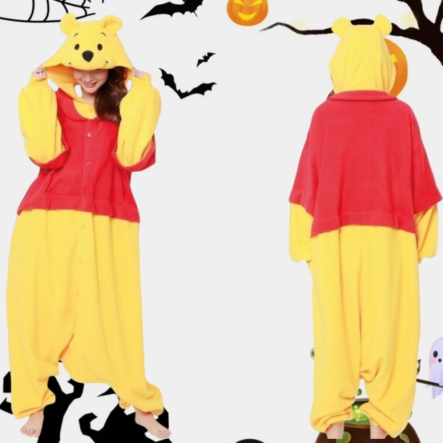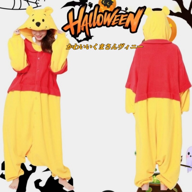 着ぐるみ パジャマ 大人用 フリース素材 くまのプーさん ハロウィン 衣装 変装 コスチューム キャラクター アニマル コスプレ 仮装 サザック送料無料