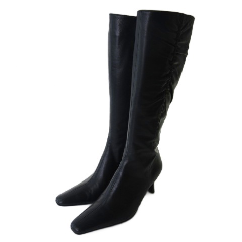【中古】ピッティ pitti ロングブーツ レザー スクエアトゥ 黒 ブラック 23.5cm EE レディース