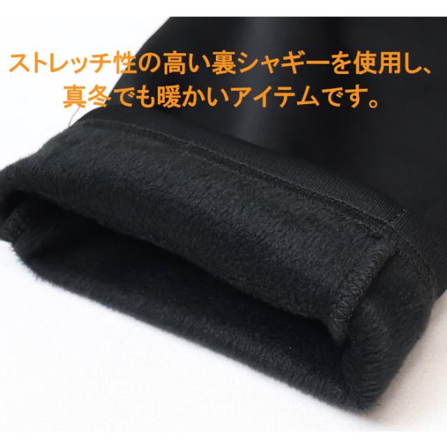 素材にはストレッチ性の高い裏シャギーを使用。真冬でも暖かいアイテムです。