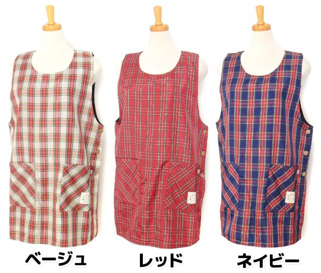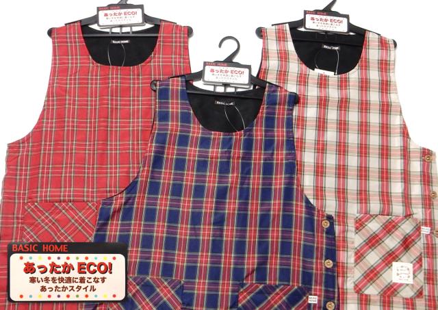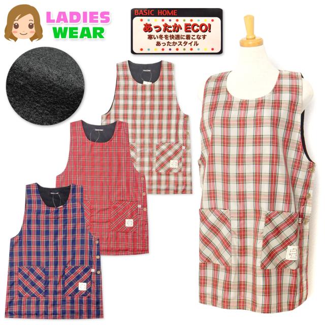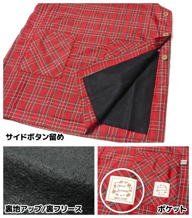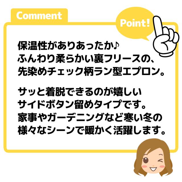 【送料無料】婦人 レディース 裏フリース ラン型 エプロン 防寒 あったか素材 保温性 サイドボタン留め 先染めチェック柄 ポケット付き sl-0679【メール便対応】
