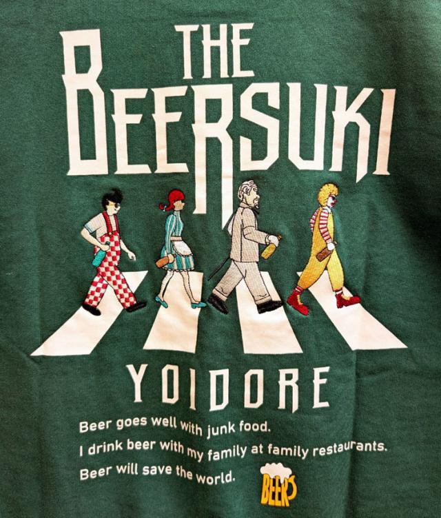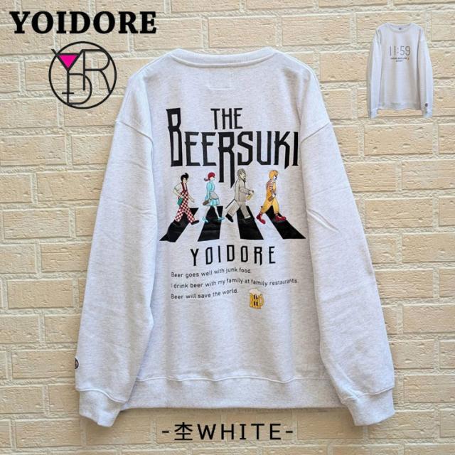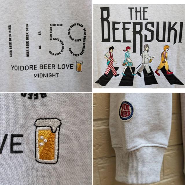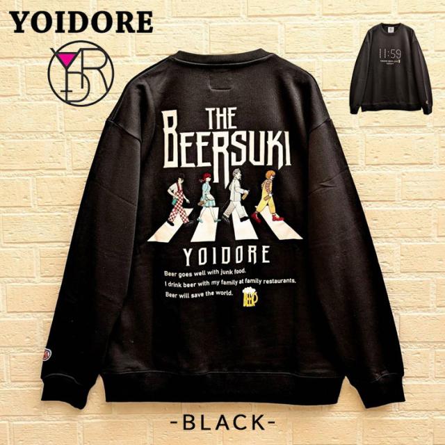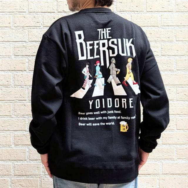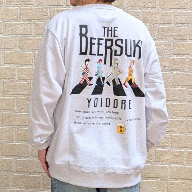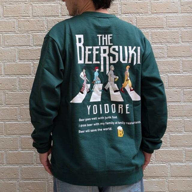YOIDORE クルーネック スウェット BEER SUKI バックグラフィック 刺繍 ややゆったりめ 裏毛生地 スウェット サラリとした着心地 ルーズシルエット 酔いどれ リラックス感 ビール好き プレゼント 835208