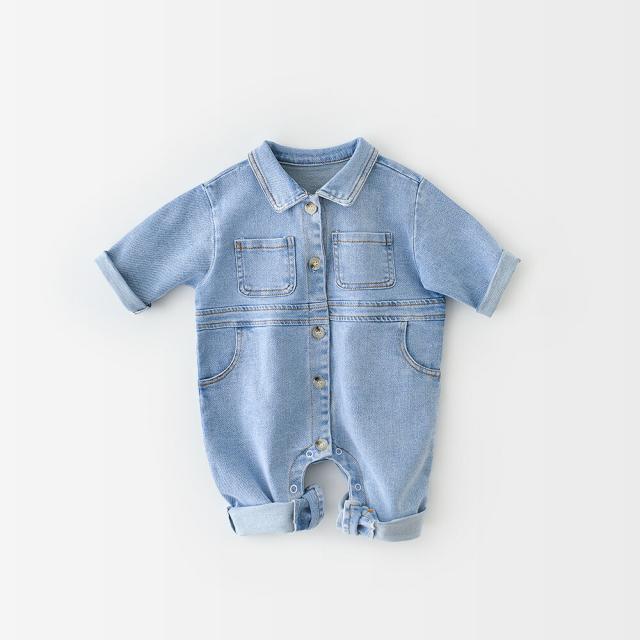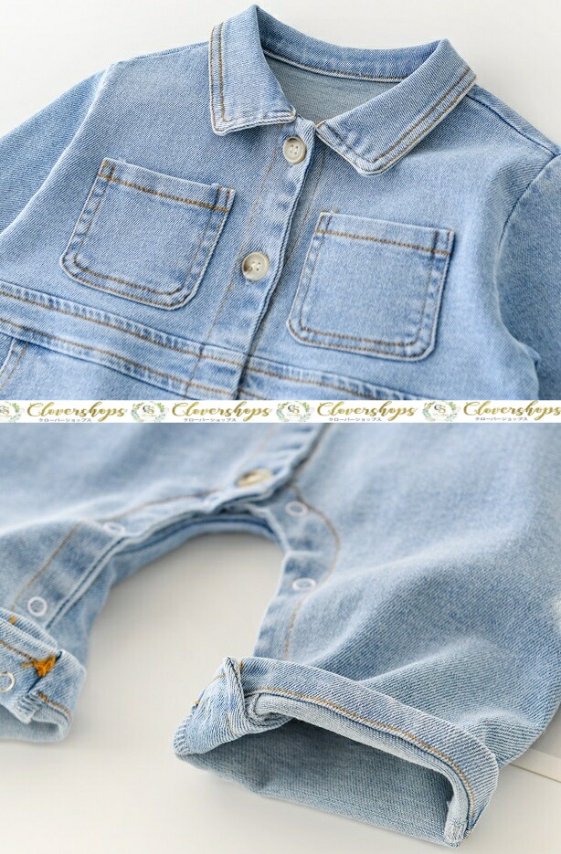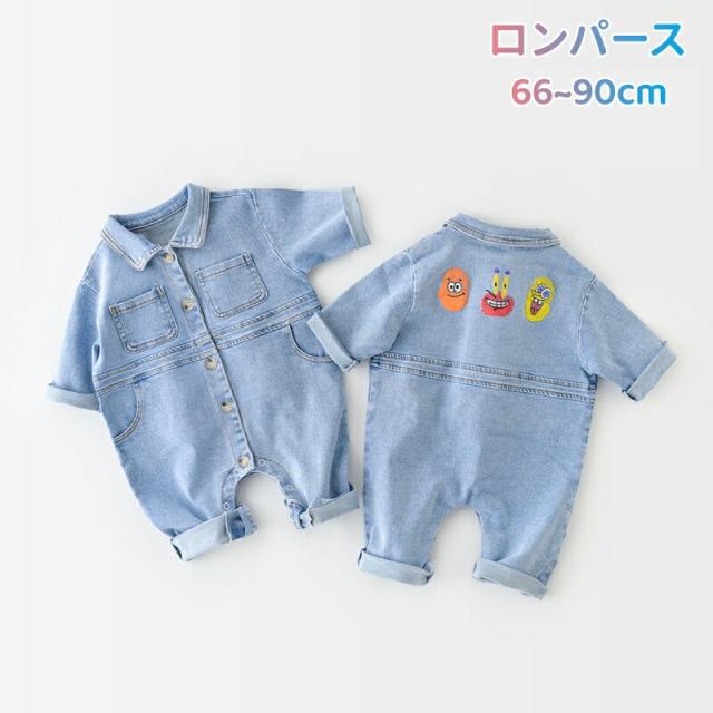 ベビー服 ロンパース 男の子 女の子 新生児 カバーオール 長袖 デニム 春 秋 前開き 可愛い 66cm 73cm 80cm 90cm