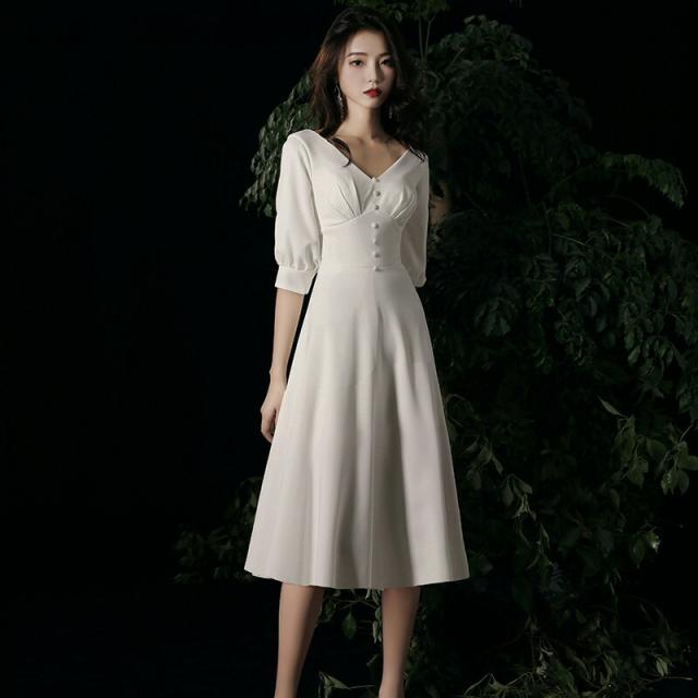 ウエディングドレス 長袖 ミモレ丈 カラードレス ワンピース 二次会 前撮り 後撮り 花嫁二次会 結婚式 ブライダル 披露宴 パーティードレス