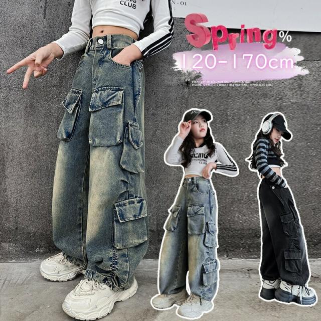 キッズ ジーパン 女の子 ダンス服 子供服 デニムパンツ 長ズボン 大きいサイズ 小学校 小学生 中学生 高校生 通学 韓国子供服120 130 140 150cm 160cm 170cm