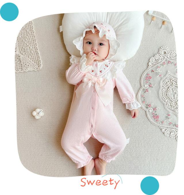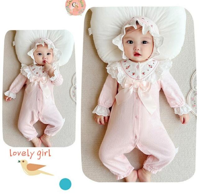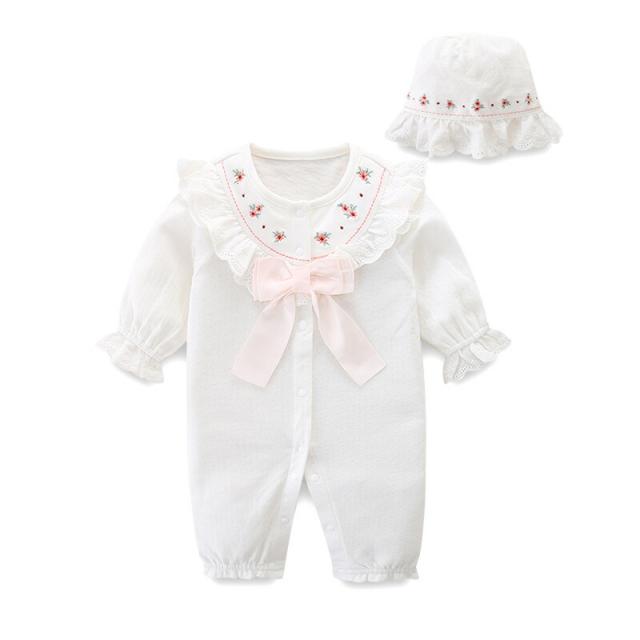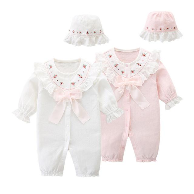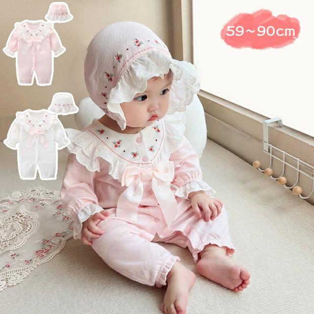 ベビー服 ロンパース 女の子 長袖 新生児服 可愛い おしゃれ 出産お祝い 帽子付き 退院 誕生日服 撮影 100日 2色 59cm 66cm 73cm 80cm 90cm