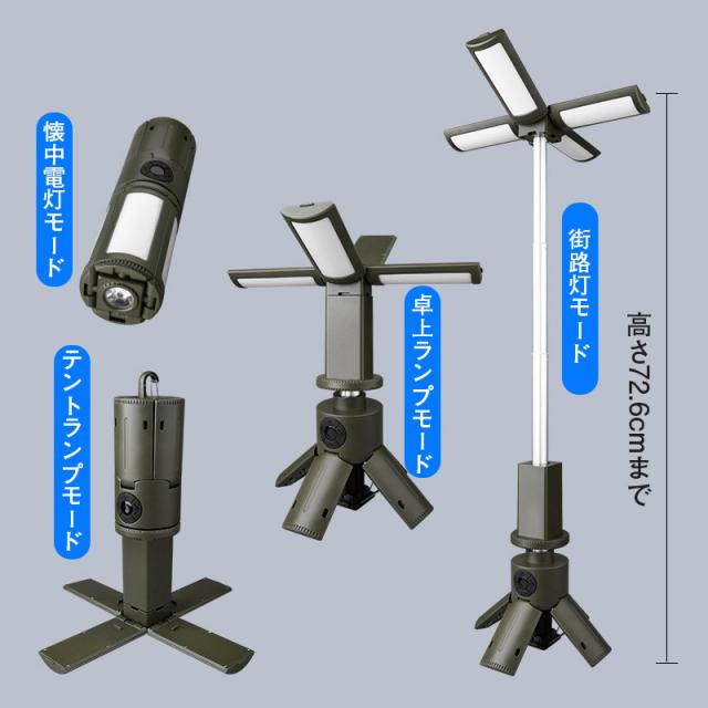 【キーワード】LEDランタン キャンプライト 収納ケース付き 充電式 LEDライト 折りたたみ 長さ調整 無段階調光 アウトドア 防災 緊急照明 懐中電灯 多機能 回転式 調節可能 四葉ランプ