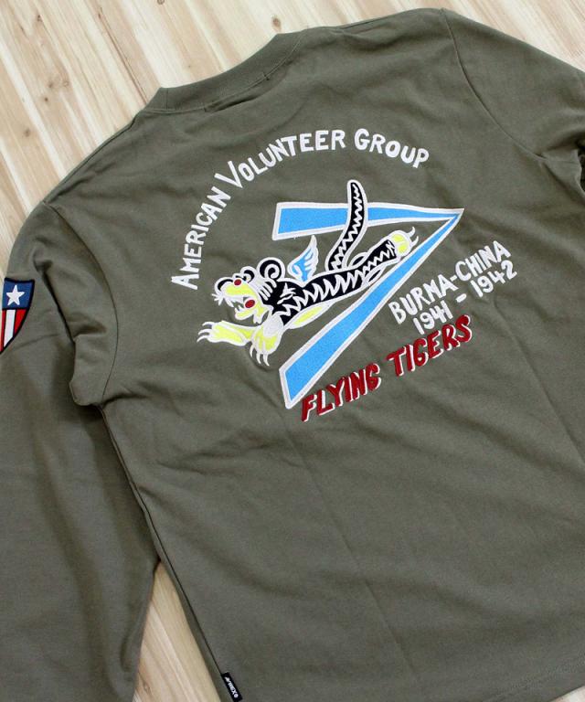 送料無料 AVIREX アヴィレックス EMB FLYING TIGER L/S T-SHIRT ロンT 長袖 Tシャツ 783-5230021 クルーネック ミリタリー トップス アビレックス メンズ ブランド ネコポス