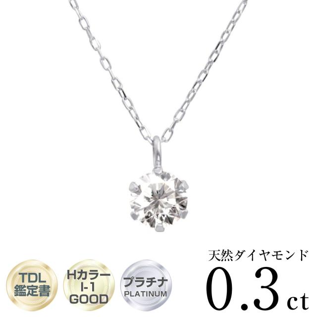 PT 天然ダイヤモンド H/I1/GD 0.3ct 6本爪 プラチナネックレス あずき40cm TDL鑑定書付