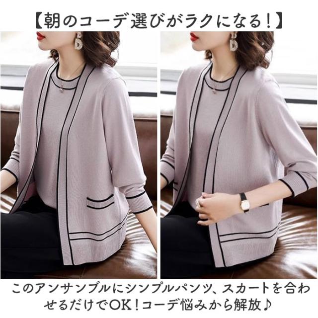 アンサンブル カーディガン 通販 ニットカーディガン レディース ニット トップス カーデガン 羽織り 春 秋 冬 2点セット ニットアンサンブル 上品 通勤 オフィス おしゃれ かわいい セーター きれいめ シンプル 母の日 オシャレ