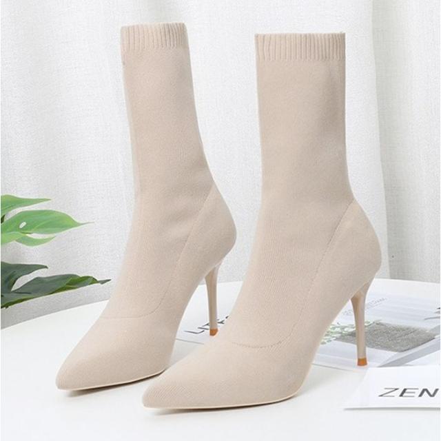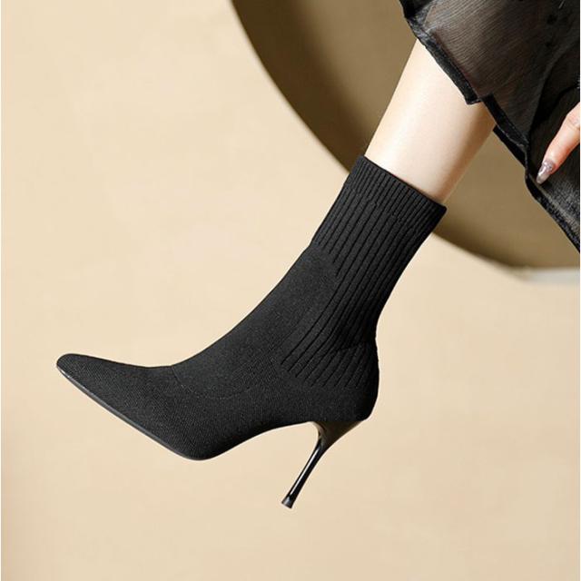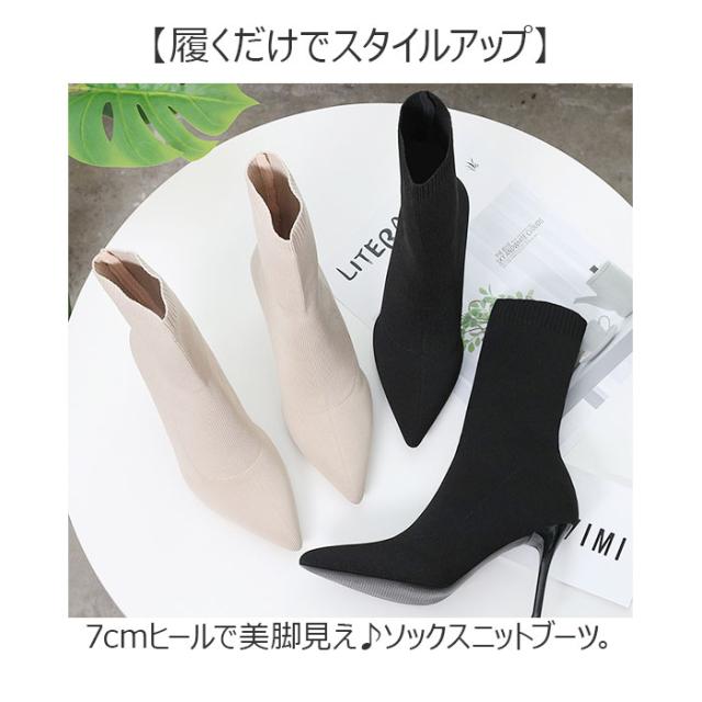 ソックスブーツ レディース 通販 ブーツ ニットブーツ ニット ソックスニットブーツ ショートブーツ ハイヒール ショート丈 ストレッチ 秋 冬 おしゃれ お洒落 ピンヒールソックスブーツ かわいい 通勤 通学 女性 シンプル 無地 フィット感