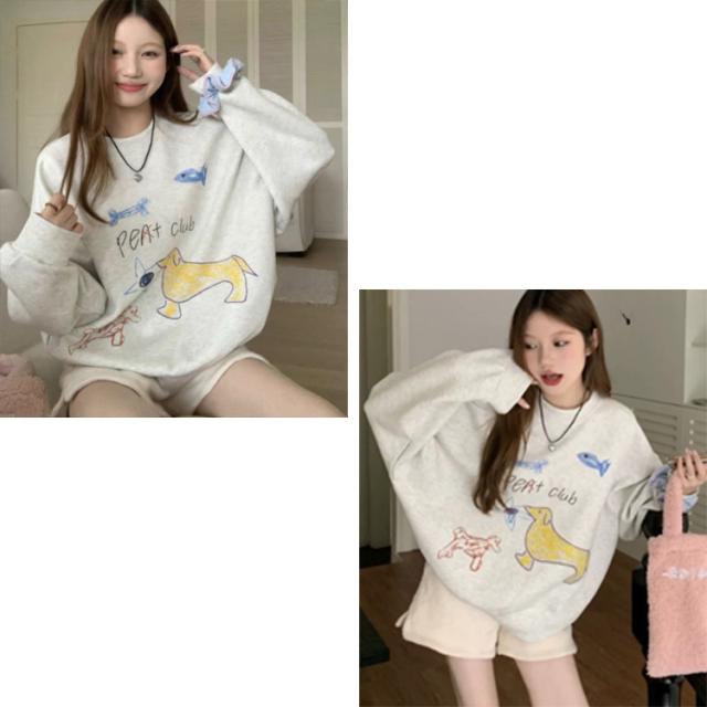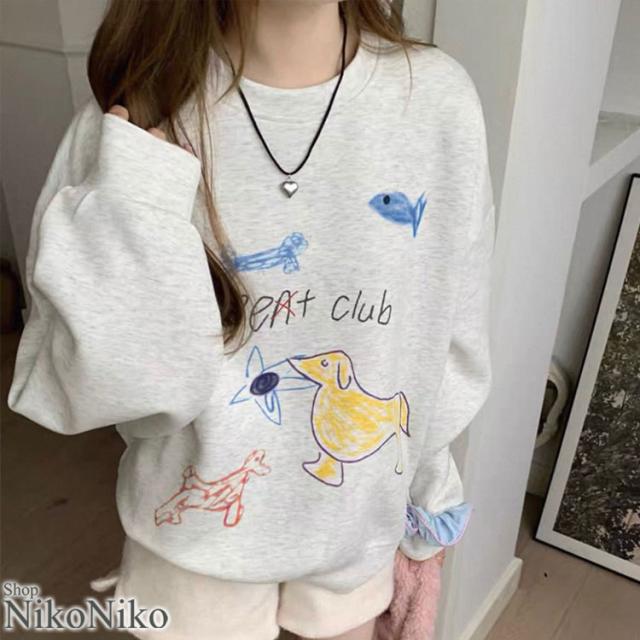 全品送料無料一部除く オーバーサイズ 落書きデザイン 裏起毛スウェット【即納】韓国ガーリー トップス プルオーバー トレーナー ビックシルエット アニマルプリント 落書き風 手書き風 レディース 韓国 Y2Kファッション 韓国ストリート 流行り トレンド かわいい