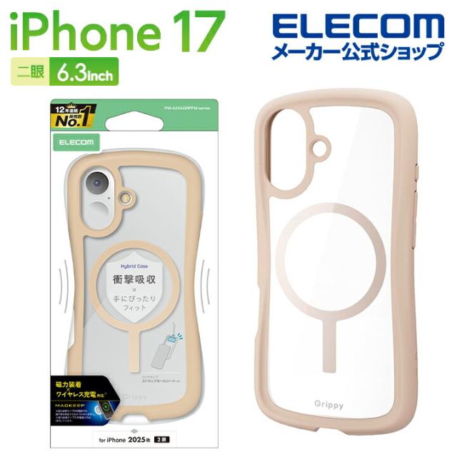 【在庫処分・お買い得!】 エレコム iPhone 17 用 Grippy ハイブリッドケース フレームカラー MAGKEEP iPhone17 ケース カバー ベージュ ┃PM-A25AGRPFMBE