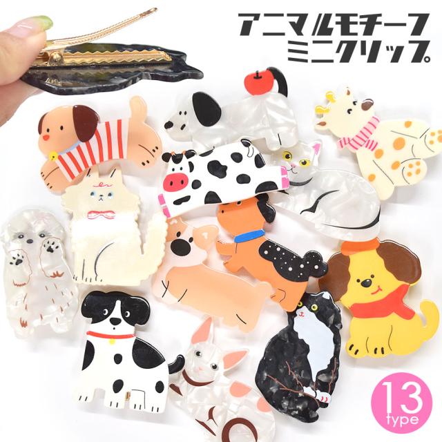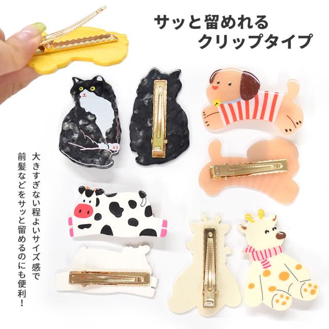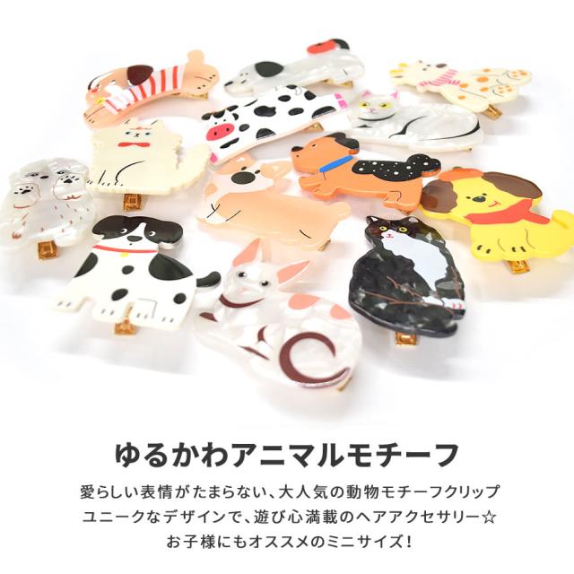 ヘアクリップ 小さめ ミニ 動物 犬 猫 アニマル 前髪クリップ レディース ヘアアクセサリー ミニクリップ (hac362)