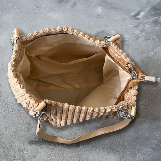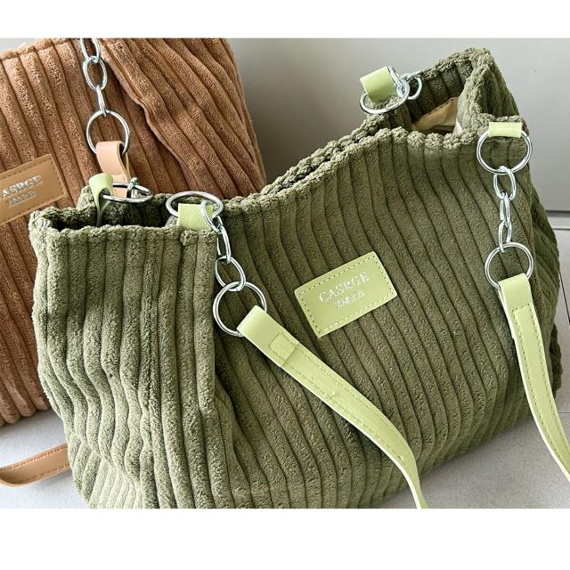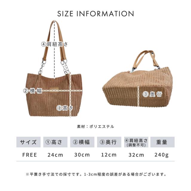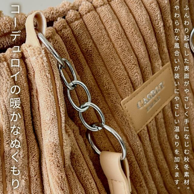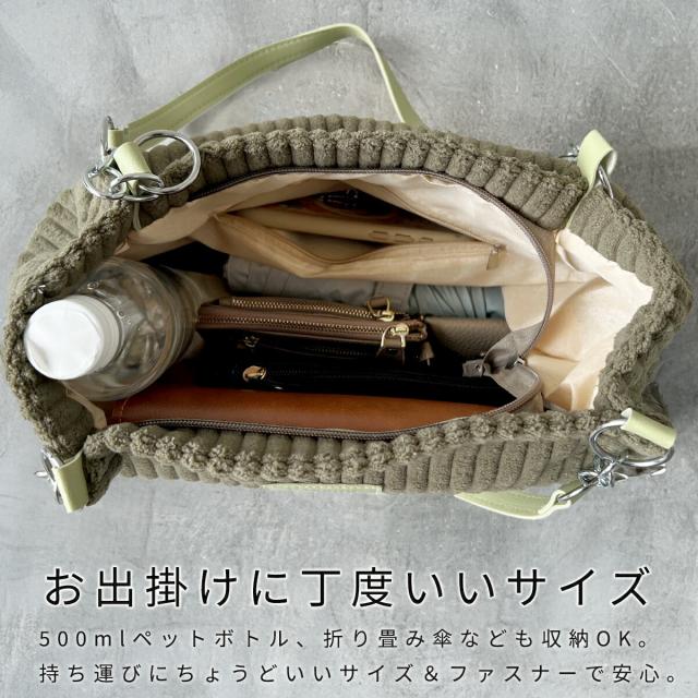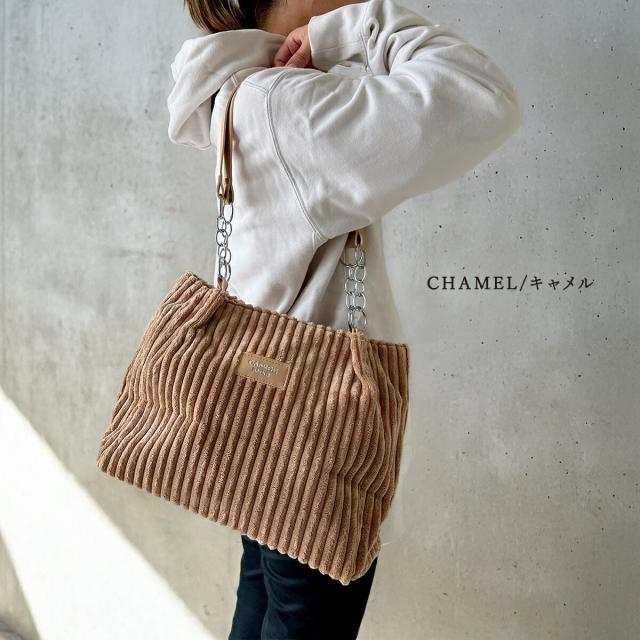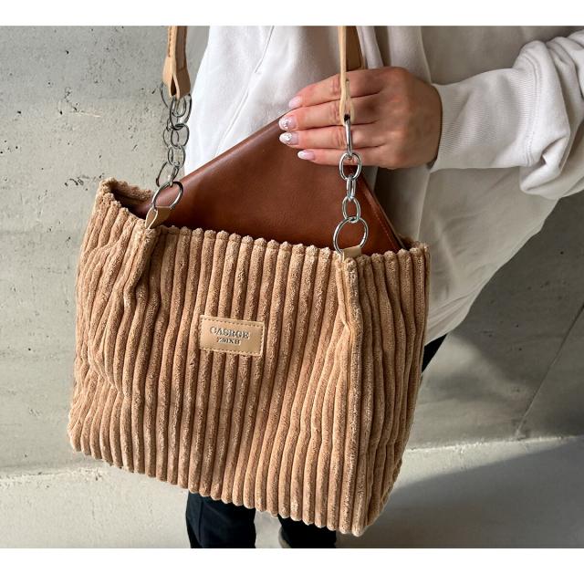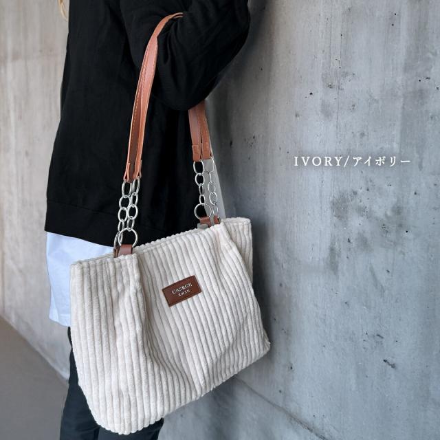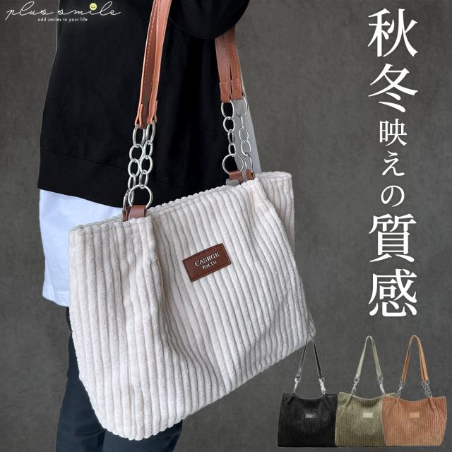 秋冬コーデにぴったりなコーデュロイ素材のショルダートートバッグ