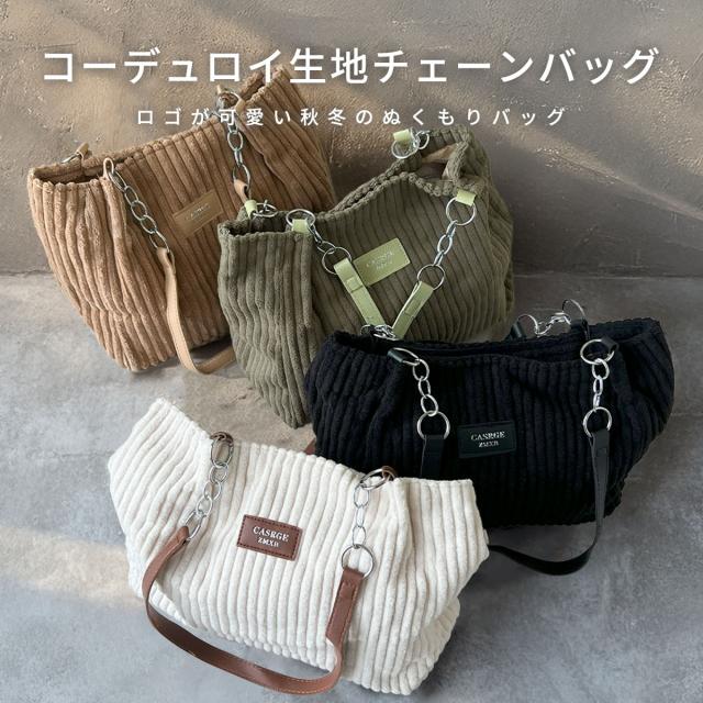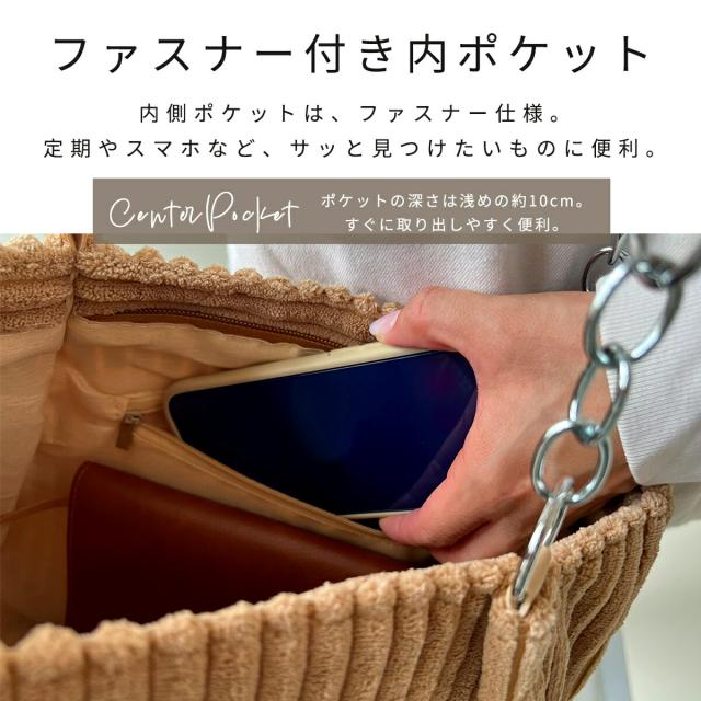 ショルダートートバッグ ショルダートート チェーントートバッグ コーデュロイ トート バッグ トートバッグ ショルダーバッグ レディース 秋冬 秋 冬 肩がけバッグ チェーン 軽量 小さめ 肩掛け 大きめ おしゃれ かわいい 持ち手 長め ファスナー付き B5 薄い
