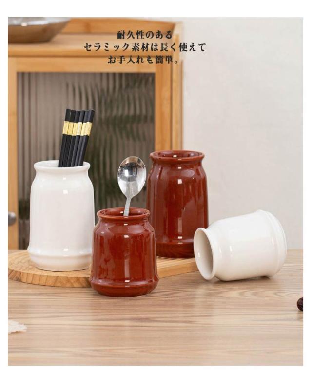 | 調理器具置きやキッチンツールスタンドとして便利なキャニスター。 底面は水切り仕様で通気性が良く、洗った箸やスプーン、フォークを衛生的に乾燥させられます。 耐久性のあるセラミック素材は長く使えてお手入れも簡単。 便利な筒型でストンと菜箸や軽量スプーンを入れとけます。 シンク周りをすっきり整え、キッチンをお洒落に演出します。 | |
