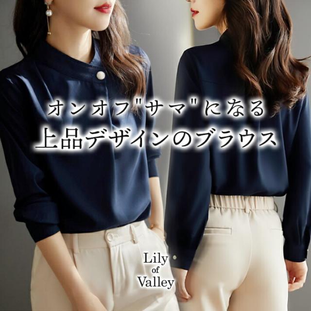 オンオフどちらもサマになる上品デザインの 1つボタン シンプル ブラウス/レディース ハイネック シャツ 大きいサイズ 韓国 オフィスカジュアル 入学式 入園式 卒業式 卒園式 秋 冬 春