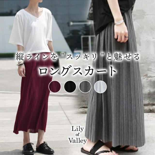 縦のラインをスッキリと魅せてくれる 細プリーツ ロング スカート/レディース 韓国 大きいサイズ プリーツ マキシ ゆったり 黒 紺 赤 ブラック グレー ネイビー ベージュ カーキ ブラウン