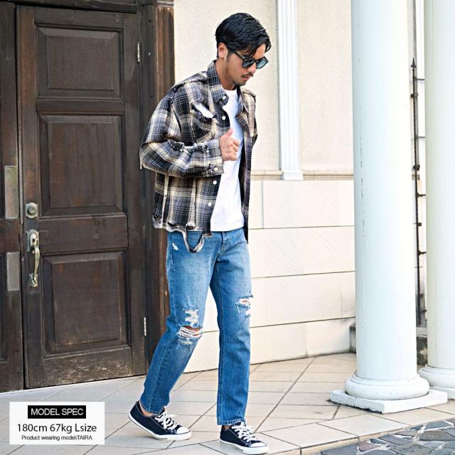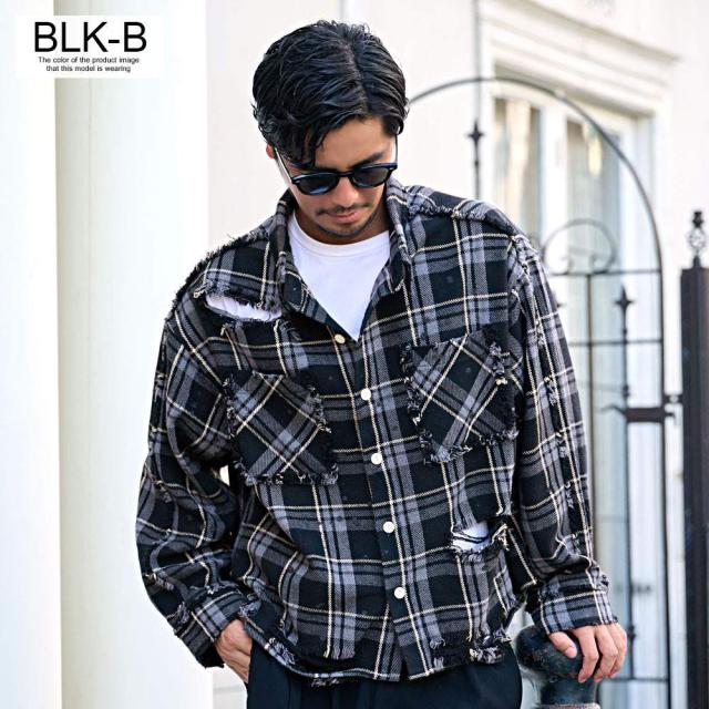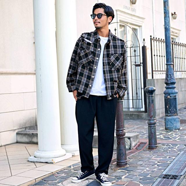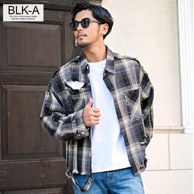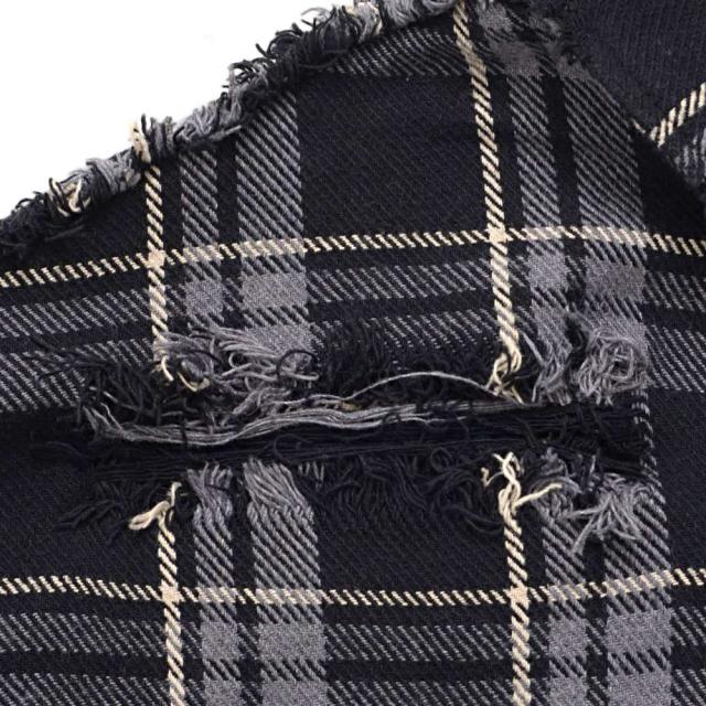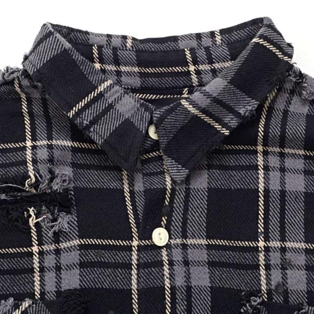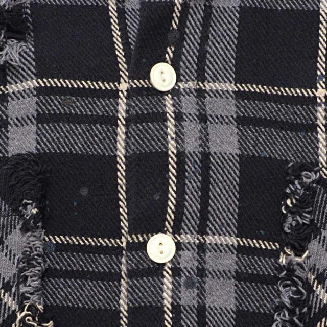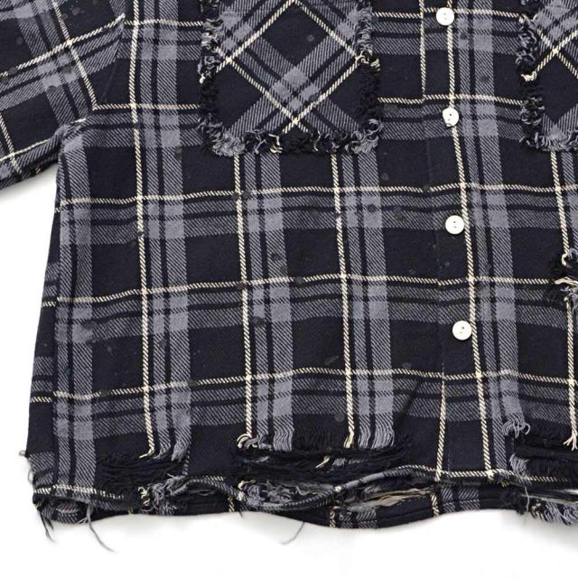 随所に施されたダメージ加工、フリンジデザイン、ペイント加工など細部までこだわり抜いたディテールが特徴で、今季トレンドのチェックシャツの中でもひと味違う存在感を放ちます。