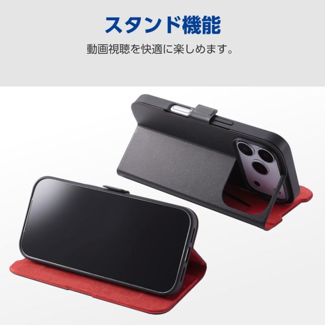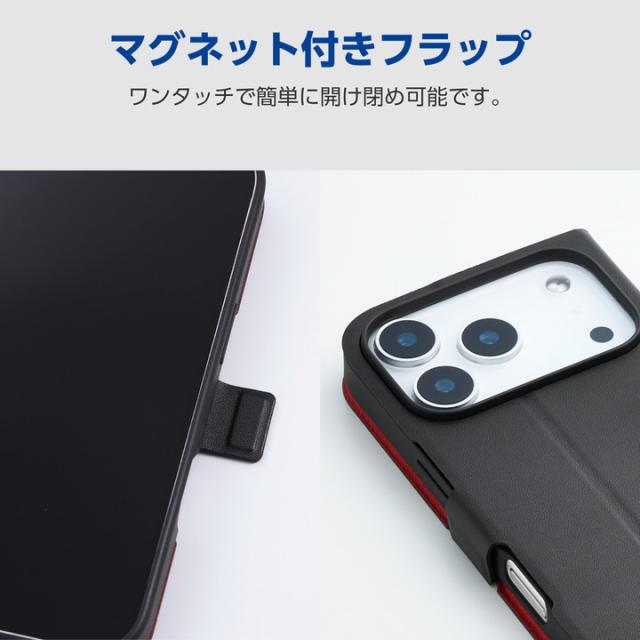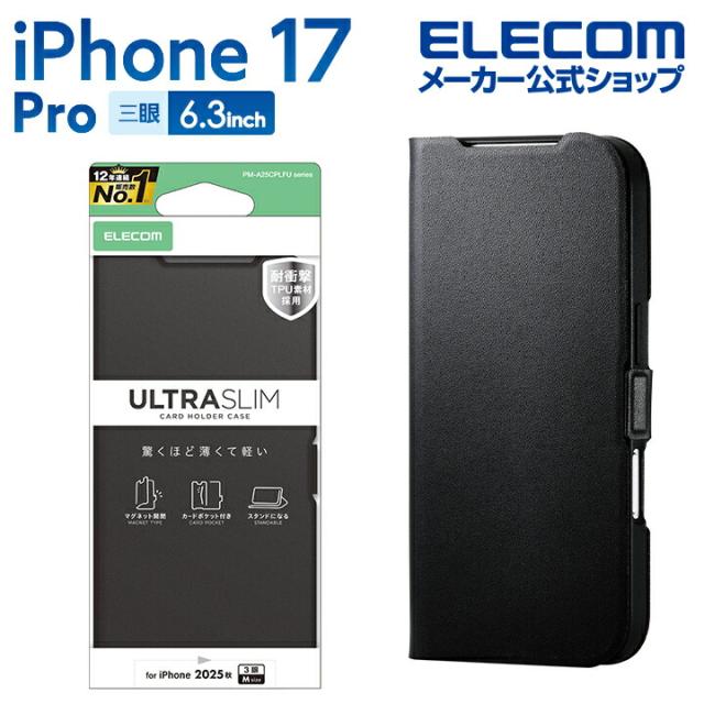 エレコム iPhone 17 Pro 用 手帳型ケース 薄型 磁石付 iPhone17 Pro 手帳型 ケース カバー ブラック ┃PM-A25CPLFUBK