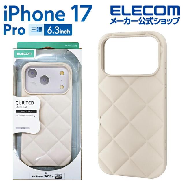 【在庫処分・お買い得!】 エレコム iPhone 17 Pro 用 ソフトケース キルティング iPhone17 Pro ソフト ケース カバー ベージュ ┃PM-A25CUCQBE
