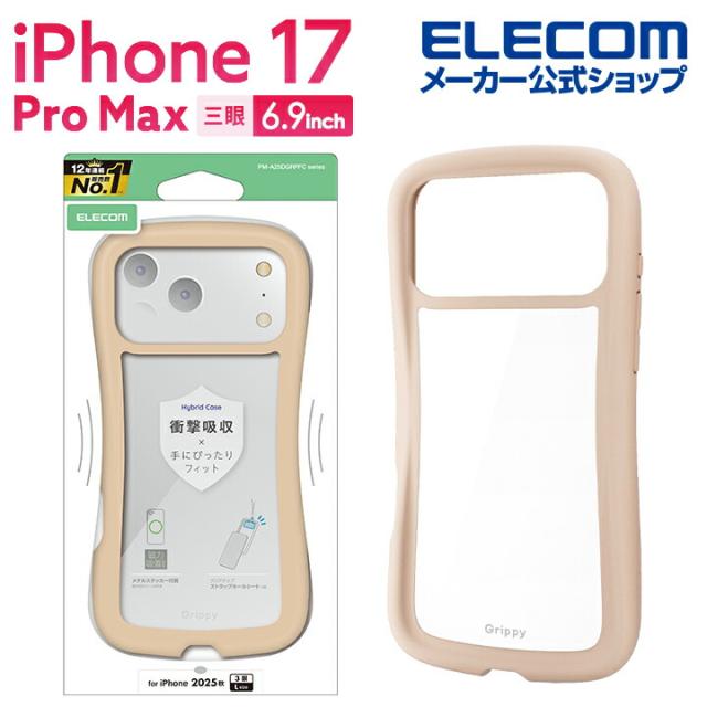 【在庫処分・お買い得!】 エレコム iPhone 17 Pro Max 用 Grippy ハイブリッドケース フレームカラー メタルステッカー付 iPhone17 Pro Max ハイブリッド ケース カバー ベージュ ┃PM-A25DGRPFCBE
