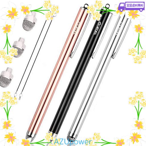 【パッケージ内容】3×スタイラスペン(クリップ付き)、3×交換用ペン先、2xストラップ。3本セットなので、ご家族、ご友達などでシェアして使えます。(交換ペン先を3個用意しており、万が一紛失するになれば安心して交換できます。また、交換用ペン先も別売可能!ASIN:「B077966SRW」でご検索ください。)
