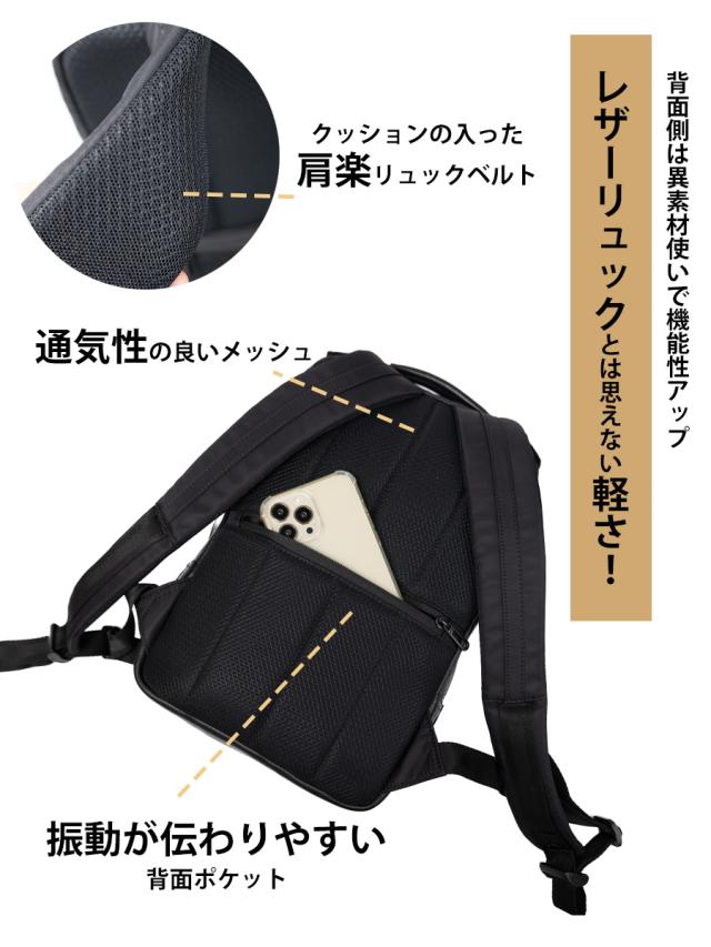 ■しっとりとしてマットなイタリアンソフト牛革を使ったA4ファイルジャストサイズで薄マチのリュックサックです。リュックベルトや背面とは異素材を使い約560gと本革リュックとは思えない軽さが特徴です。 ■すっきりとした前面ポケットはアクセスしやすくスマホ等が収まるサイズ感になっています。クッションがしっかり効いた背面のポケットにもスマホを収納することができます。 ■メイン層には11インチ程度まで収納可能なクッション入りのポケットが付いています。 ■書類やPCが入る必要最小限のサイズ感で男女問わずお持ちいただけます。通勤からプライベートまでお持ちいただけます。 |