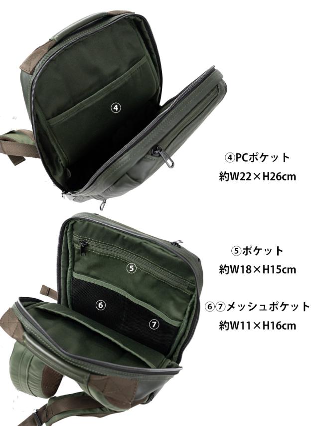 ■仕様:【前面】ポケット×2【内部】PCポケット×1、ポケット×3