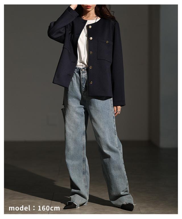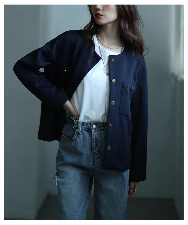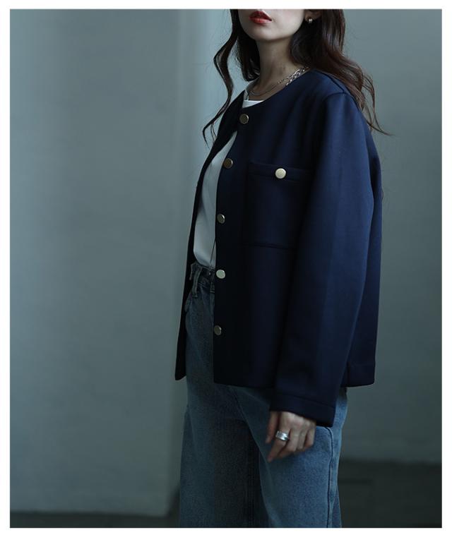 冬新作 大人リュクスな品格纏うノーカラーストレッチジャケット レディース ファッション アウター ジャケット ノーカラー 長袖 羽織り 金ボタン 無地 春 秋 冬 30代 40代 50代 60代 サワアラモード sawaalamode otona 大人 cawaii 可愛い 洋服 かわいい服 alwj-785541