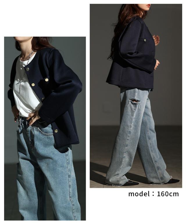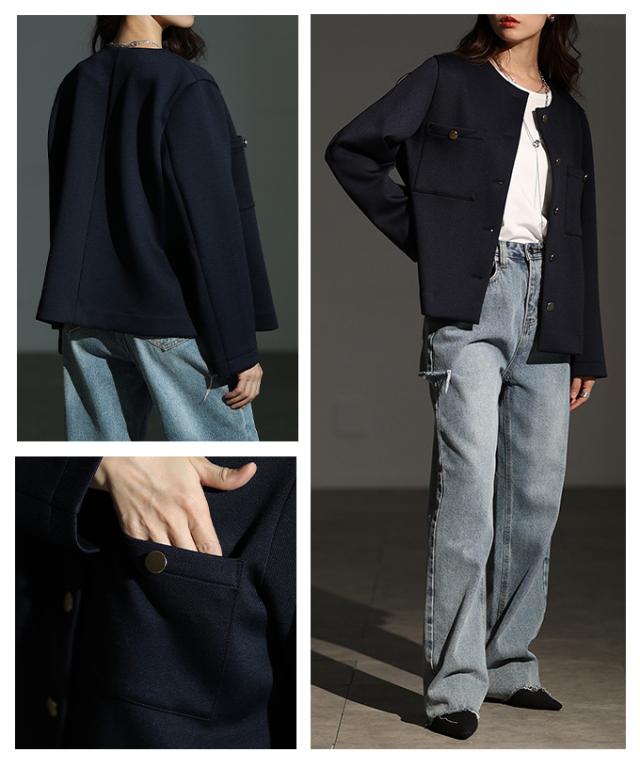 特徴: ノーカラー 金ボタン 胸ポケット