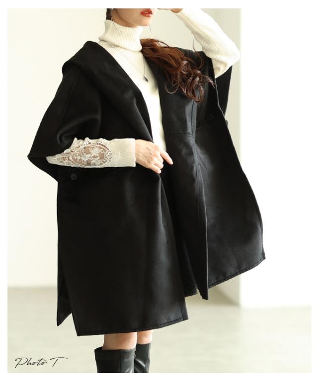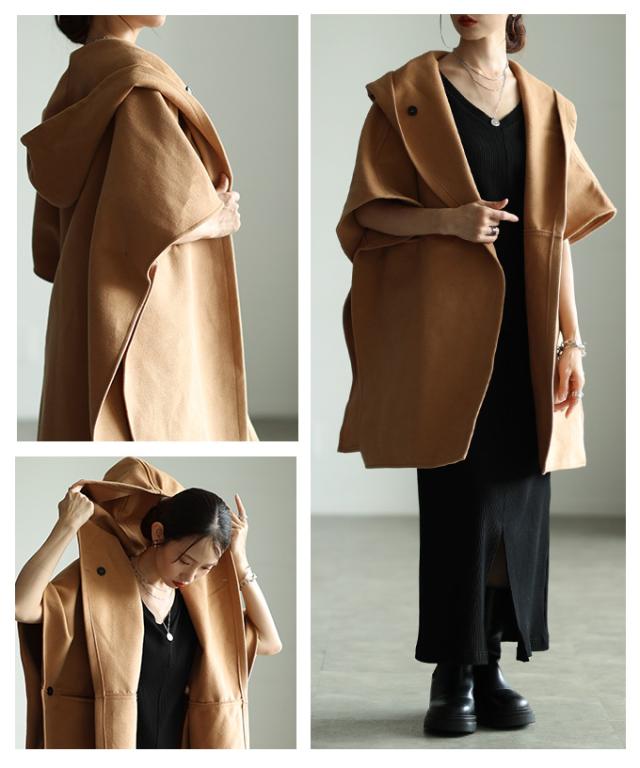 冬新作 羽織るだけでサマになるフード付きポンチョジャケット レディース ファッション アウター ジャケット ポンチョ 秋服 大人可愛い 20代 30代 40代 レディースファッション カジュアル 体型カバー おしゃれ きれいめ ママ サワアラモード sawaalamode mode-10027
