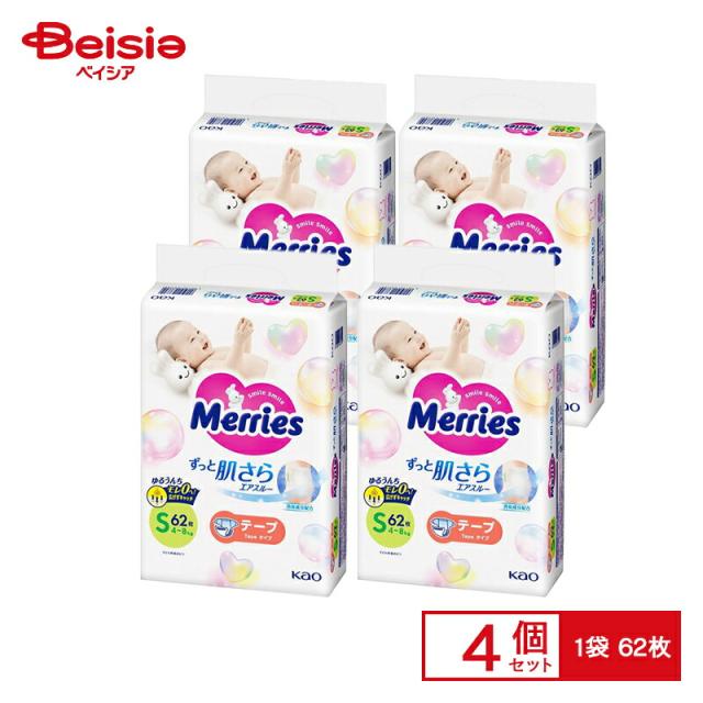 花王 メリーズ エアスルー テープ Sサイズ 62枚×4個入(体重4〜8kg) 紙おむつ