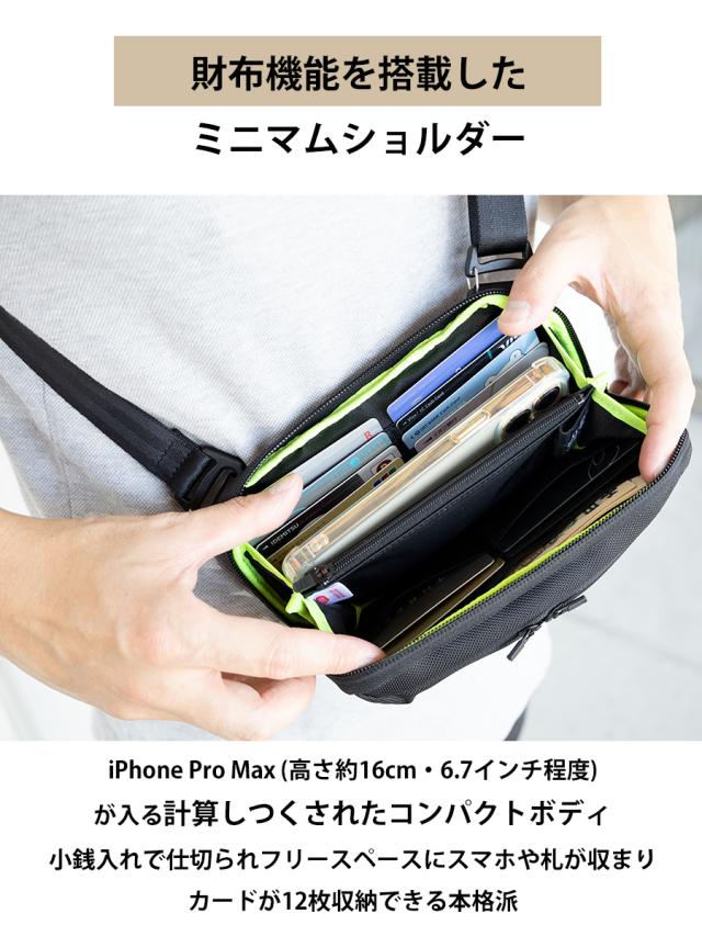 インビスタ社の『軽量』『耐久』『耐水』の高性能素材を使ったクールな財布機能を搭載したスマホショルダーです。
