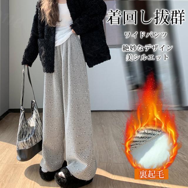 ワイドパンツ ガウチョパンツ レディース 裏起毛ゆったり バギーパンツ プリーツ 冬新作 秋冬 体型カバー 大きいサイズ フレアパンツ カジュアル ビジネス ストレート ボトムス ズボン ホワイトデー 卒業式
