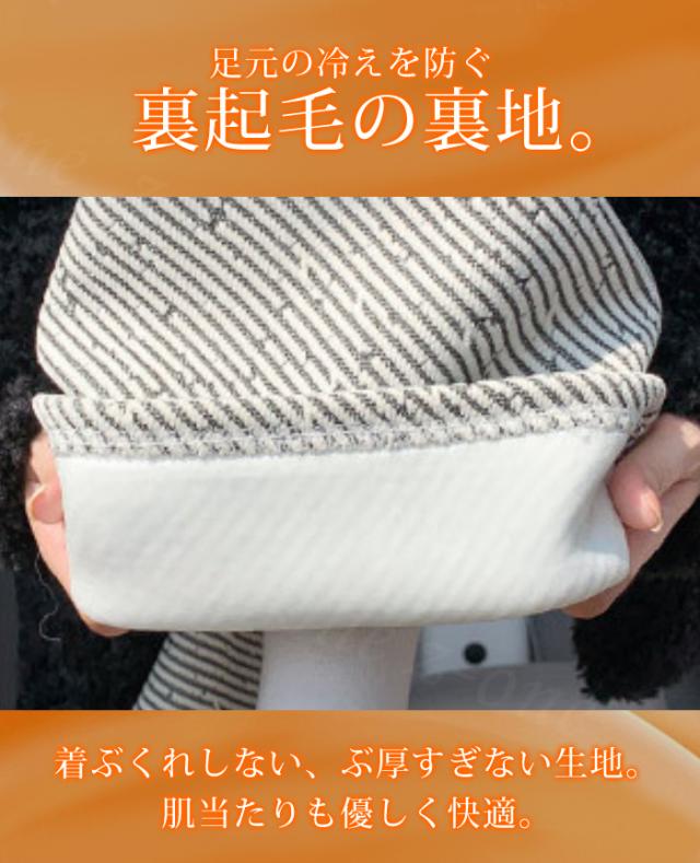 足元の冷えを防ぐ裏起毛の裏地。 着ぶくれしない、ぶ厚すぎない生地。 肌当たりも優しく快適。