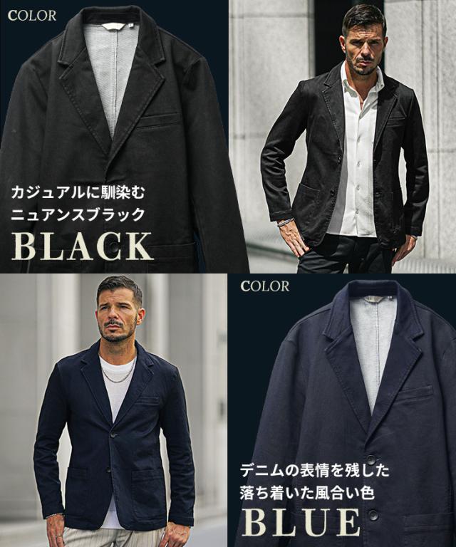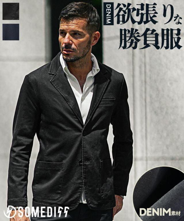 テーラードジャケット メンズ カットデニム ジャケット メンズ カジュアルスーツ メンズ 新作 セットアップ対応 コーティング スウェットデニム ジャケット テーラードジャケット メンズ デニム メンズ ブラック ブルー 秋服 秋物 ジョーカー joker SOMEDIFF サムディフ