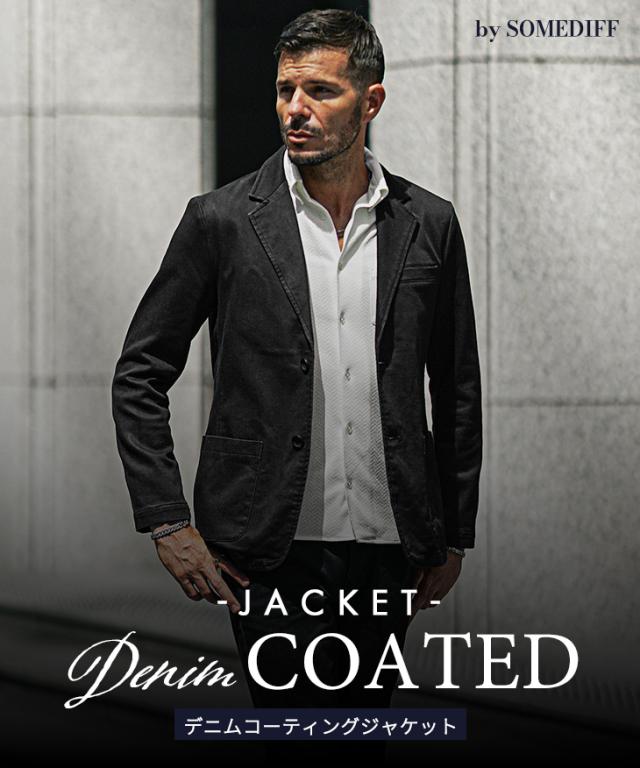 SOMEDIFF(サムディフ)『カットデニムコーティングジャケット』【カットデニムコーティングジャケット】■Design/デザインテーラードカラーに2ボタンを配した端正なデザインが、ジャケットスタイルに都会的な印象を与えます。堅苦しさのない着心地と素材感が、大人の余裕をさりげなく演出。さらに、艶感のあるコーティングが光の加減で表情を変え、品のある存在感を放ちます。デニムならではのカジュアルな風合いを残しながらも、スーツのような上品さを兼ね備えた仕上がりで、深みのあるブラックがコーディネートを引き締め、着こなしをグッと大人っぽく格上げ。オンにもオフにも取り入れやすく、一枚で余裕ある雰囲気を纏えるジャケットです。