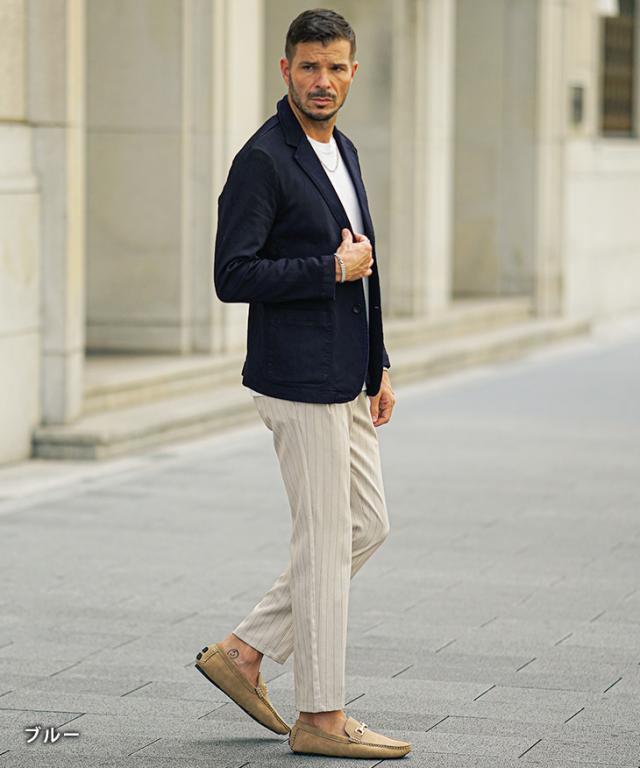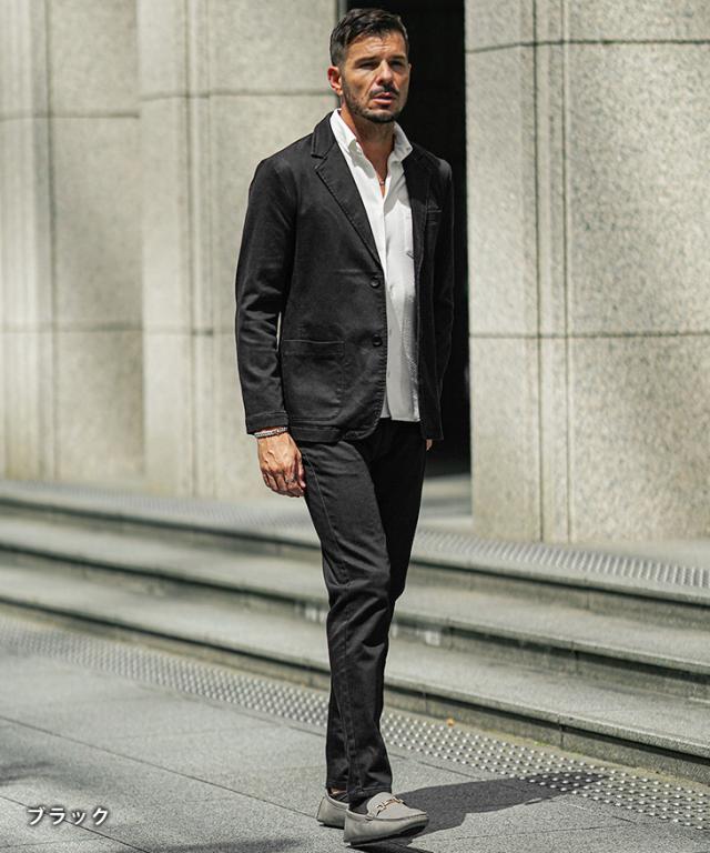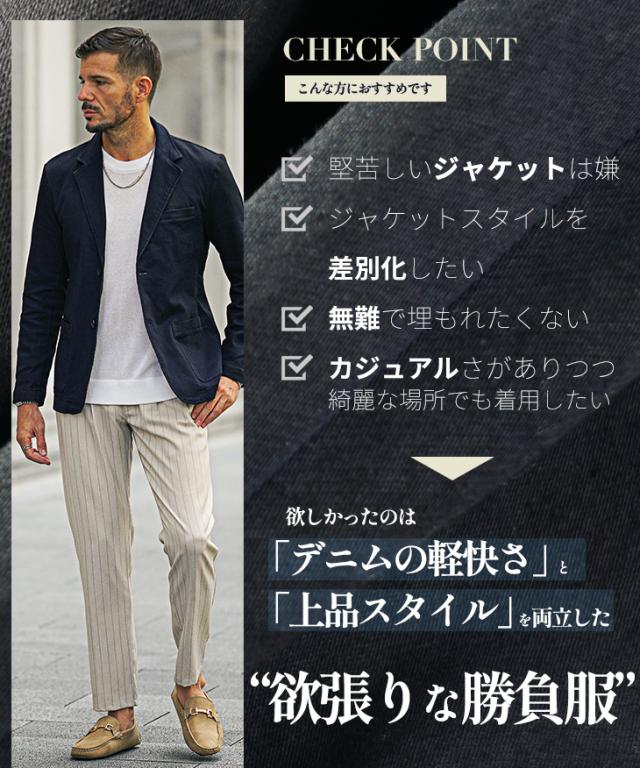 デニムならではのカジュアルな風合いを残しながらも、スーツのような上品さを兼ね備えた仕上がりで、
