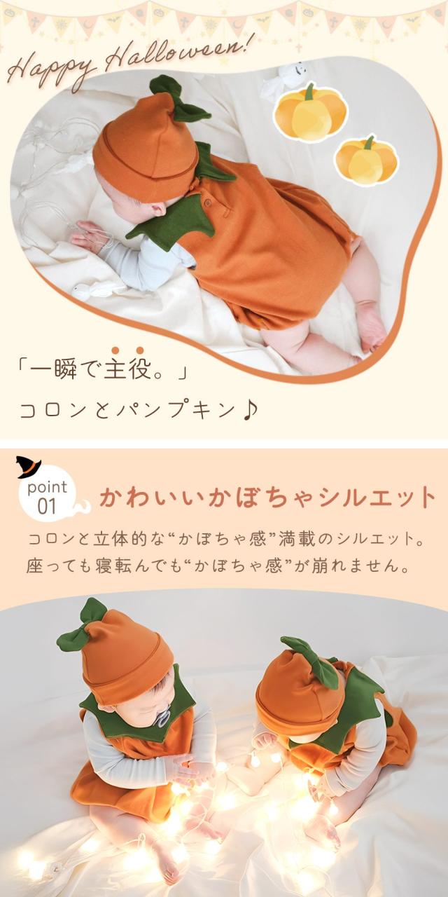 ハロウィン コスプレ ベビー 赤ちゃん かぼちゃ コスチューム 帽子付き 仮装 衣装 子供 男の子 女の子 ベビー服 ロンパース ワンピース かわいい 新生児 幼児 パンプキン 可愛い お揃い 着ぐるみ 小悪魔 変装 ノースリーブ カバーオール 秋冬 MILASIC ポイント消化