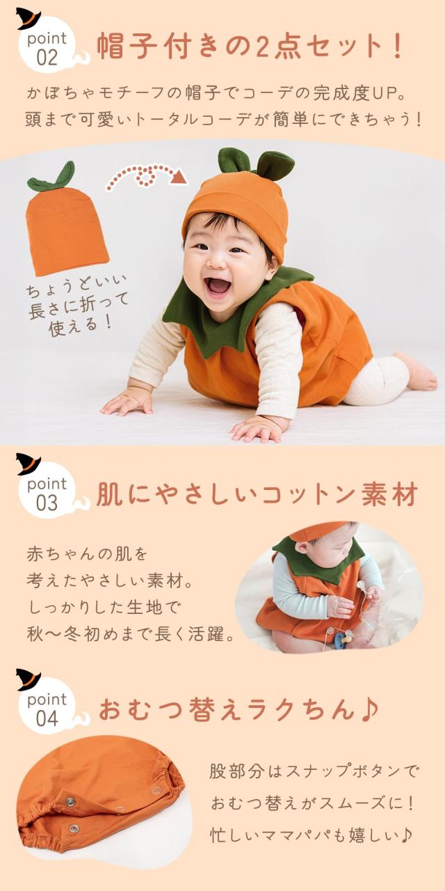 秋冬のイベントにぴったりな、ベビー用かぼちゃコスチューム。