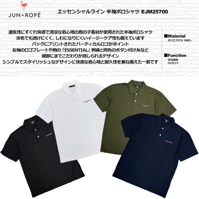 JUN&ROPE 2025 メンズ 半袖ポロシャツ 吸汗速乾 UVカット エッセンシャルライン EJM25700 メール便発送【新品】25FW ジュン&ロペ ジュンロペ 半袖シャツ ゴルフウェア