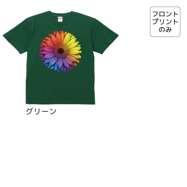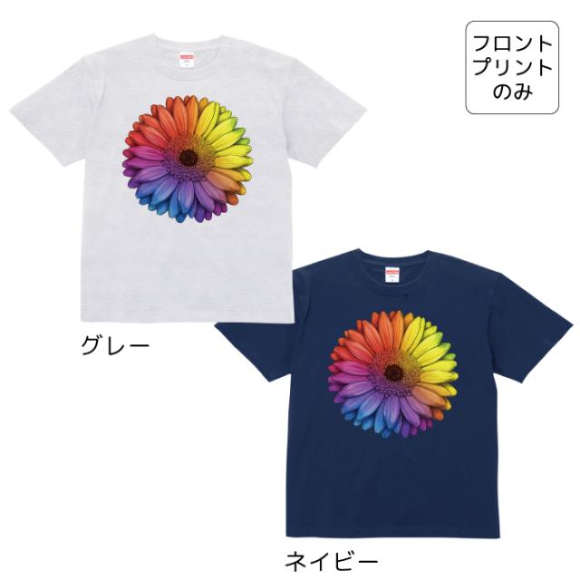 Tシャツ メンズ レディース 花 一輪 フラワー ワンポイント 虹 カラフル ジュニア キッズ 半袖 コットン100% 綿100% 100サイズ 120サイズ XXS XS S M L XL 5.6オンス zakka043-1094