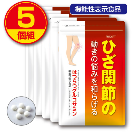 旧商品のため訳あり・賞味期限:2026年9月12日 送料無料・ゆうパケット配送 ひざ関節の動きの悩みを和らげる はつらつグルコサミン 180粒 30日分(5個組)機能性表示食品 えび・カニ由来グルコサミン コンドロイチン 粒タイプ サプリ (通常価格11610円)